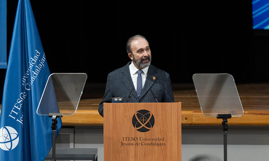 Durante la ceremonia de entrega del galardón, que tuvo lugar en el auditorio homónimo en el campus, Alexander Zatyrka, SJ, rector del ITESO, dijo que este año en la entrega de los reconocimientos confluían dos acontecimientos: el reciente cierre de los festejos por los 50 años de las OFI y la celebración del Día del ITESO, fecha en la que la comunidad se congrega para fortalecer su identidad “itesiana”. En su mensaje compartió las ideas expresadas por el papa León XIV, quien recientemente dijo que la vida estudiantil brinda a las personas una mirada de conjunto que permite ir más allá. “Quien estudia”, citó el Rector retomando el mensaje del Papa, “se eleva, adquiere una mirada amplia, ve más lejos; no simplifica y no teme a las preguntas, con lo que vence la pereza intelectual”. Este espíritu, añadió Zatyrka, está presente en el espíritu de los PAP, cuyo trabajo permite “aplicar el conocimiento a problemas reales en un proceso de doble beneficio: integran el saber con el quehacer, fortalecen la mirada crítica y fomentan la colaboración y la innovación, al tiempo que las personas se benefician de la atención y de las alternativas que se generan para impulsar la construcción de mejores condiciones de vida”.
